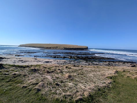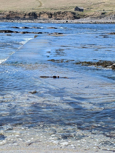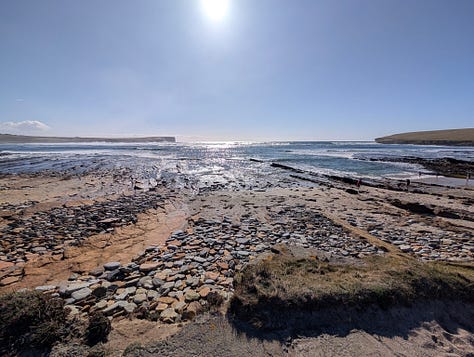Regardless, we continue on and find ourselves in Birsay. A quick wander around the Earls Palace and then we head down to the beach. The weather has improved dramatically and this is a beautiful spot. There is a causeway across to the nearby island which, had the fates and tides aligned, we would have crossed. Although the causeway is only just submerged, the tide here comes in from both sides and quite dramatically, so no wading will be attempted!