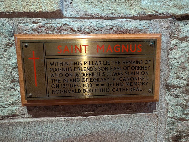 St. Magnus himself was relocated from his initial burial site and placed inside one of the pillars, as was his nephew Rognvald who built the cathedral to honour his uncle. Rognvald was also later canonised.