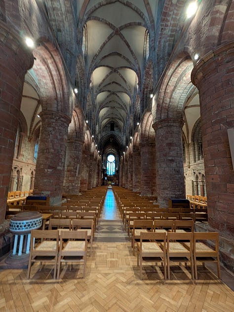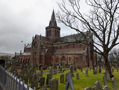 Overnight, the wind picked up to gale force and we start to wonder whether our flight will be cancelled. Not an infrequent occurrence in Orkney I believe. We decide to kill a few hours before heading back to the airport by wandering around Kirkwall and visiting the St. Magnus Cathedral, dating from the twelfth century.