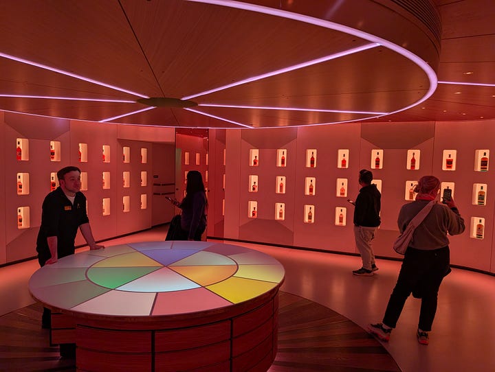 After that, we are ready for a drink. As luck would have it, we have booked to go to the Johnny Walker Experience. This turns out to be pretty entertaining and provides much more sampling opportunities than the whiskey experience on the Royal Mile. They seem to be on a bit of a mission to wipe out single malt snobbery and explain why the complex blending that they undertake is better. I am convinced, but still prefer bourbon. They are clearly geared up to the digital age, suggesting hash tags and providing strategic lighting for the perfect snap of your drink.