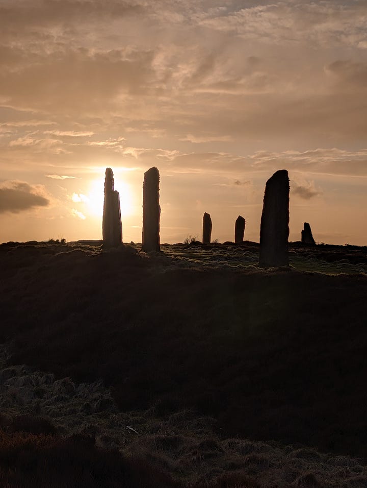 This is a superb stone circle and one of the largest in the country. It was built around the same time as Stonehenge and Avebury, but each of these had construction phases stretching over hundreds of years and these will all have overlapped and there is evidence that the building of these was a communal effort by people from across the country, including groups from Orkney being involved at Stonehenge.