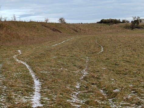 After wandering around Durrington Walls for a while, I decided that it was chuffing cold and I would drive to Stonehenge. Now I do have English Heritage membership and so can get in via the visitor centre free, but today I wanted to just approach it from the landscape and so found myself driving through a military housing estate and along a fairly rough access road to see how close I could get. You can actually walk up pretty near to Stonehenge without having to pay to go in (basically paying just gets you one fence further in, but not to the stones obviously), although I had to park a ways back as there were quite a few trucks and caravans parked up along the road - I am assuming people who came for the winter solstice and hung around. I’m not sure I would have been up for camping in that weather. I did see that some hardy soul had pitched a tent in the woods near Woodhenge. Brrrr.