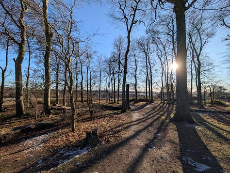 From the car park, it didn’t look as though it was too much of a climb, so I eschewed putting on my walking boots or taking walking poles with me. This turned out not to be the smartest move as I headed up the clearly very popular path, now nicely trampled into compacted snow. Getting up was largely OK, but I must have cut an interesting figure on my way down with my micro-step shuffle and constant criss-crossing to the edges of the path where there was some limited grip.