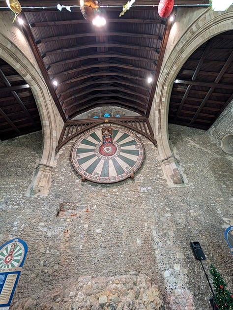 Main business of the day (besides seeing the Alfred statue of course) is to get to the Great Hall to see the actual round table of King Arthur. Well I say actual round table, but analysis has dated it to about 1250 or so. Darn pesky, meddling science! The theory seems to be that it was created by Edward I. Medieval kings were very keen to try and associate themselves with King Arthur and tap into the national love affair with Arthurian myths. I guess it was the medieval equivalent of populism.