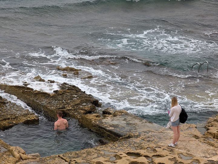 Along the way I reflect that the bathing looks quite extreme. Not that I will be indulging in as my bathing attire is clearly with my laptop’s charge