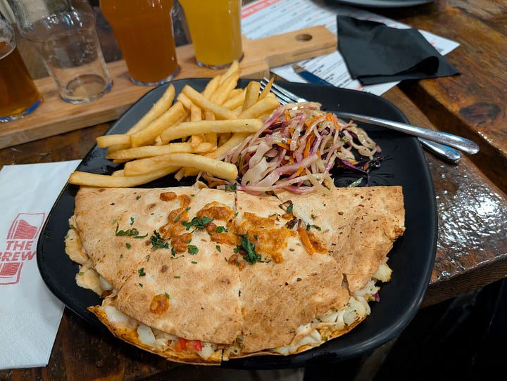 I seem to have developed a tradition of finding brew pubs for my first, jet-lagged meal on my travels. I can’t really claim jet leg with a I hour time difference, but I refer you to the 2am start. It counts.