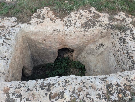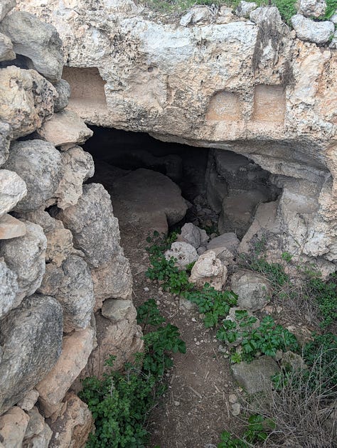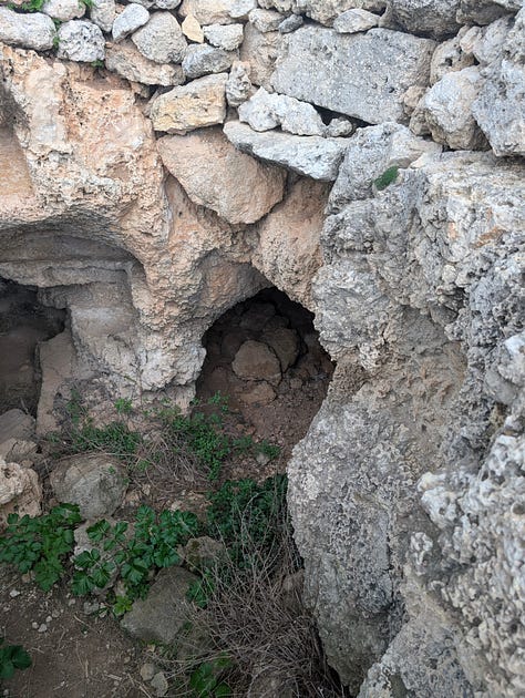 Whilst I have my nose, metaphorically rather than physically , in the tomb I am approached by a man waving his arms and calling to me. I thought I had been busted for being on some land that I shouldn’t have been. Not so, he just wanted to tell me where the good stuff was. The Maltese are like that.