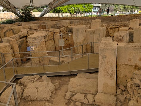 I am heading to the Hal Tarxien Temple Complex - a collection of temples built around the time, but probably slightly later, than those I have visited so far - a Johnny-come-lately 4.5 to 5 thousand years ago.